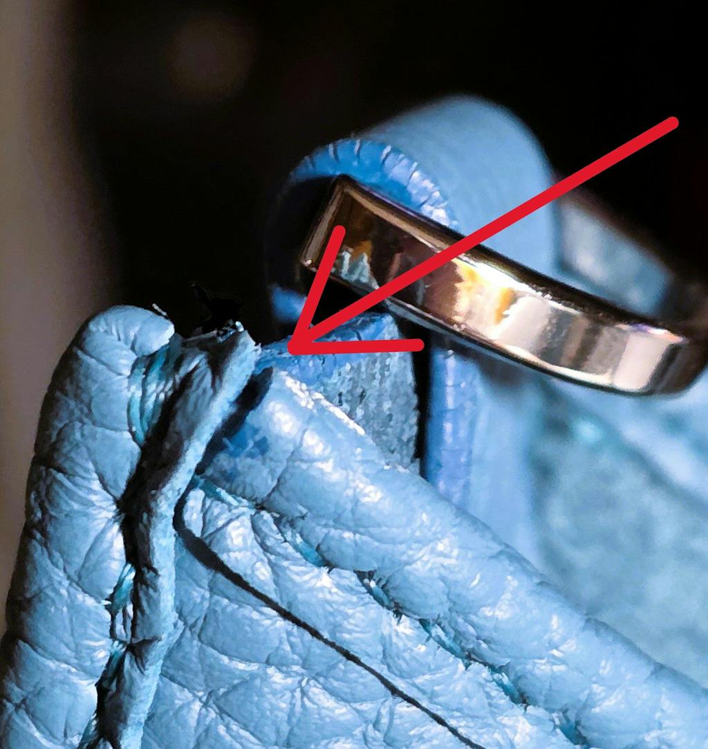 • Stitching holes: We use pricking irons to punch holes for this leather kit, which enable the crafter to create diagonal stitches and they look very good when done correctly. It may look invisible, bend the leather edge a little bit you will find these holes.